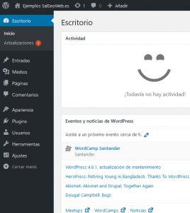 Lo primero de todo quiero que veais un menú por defecto, limpio, en un wordpress recién instalado: